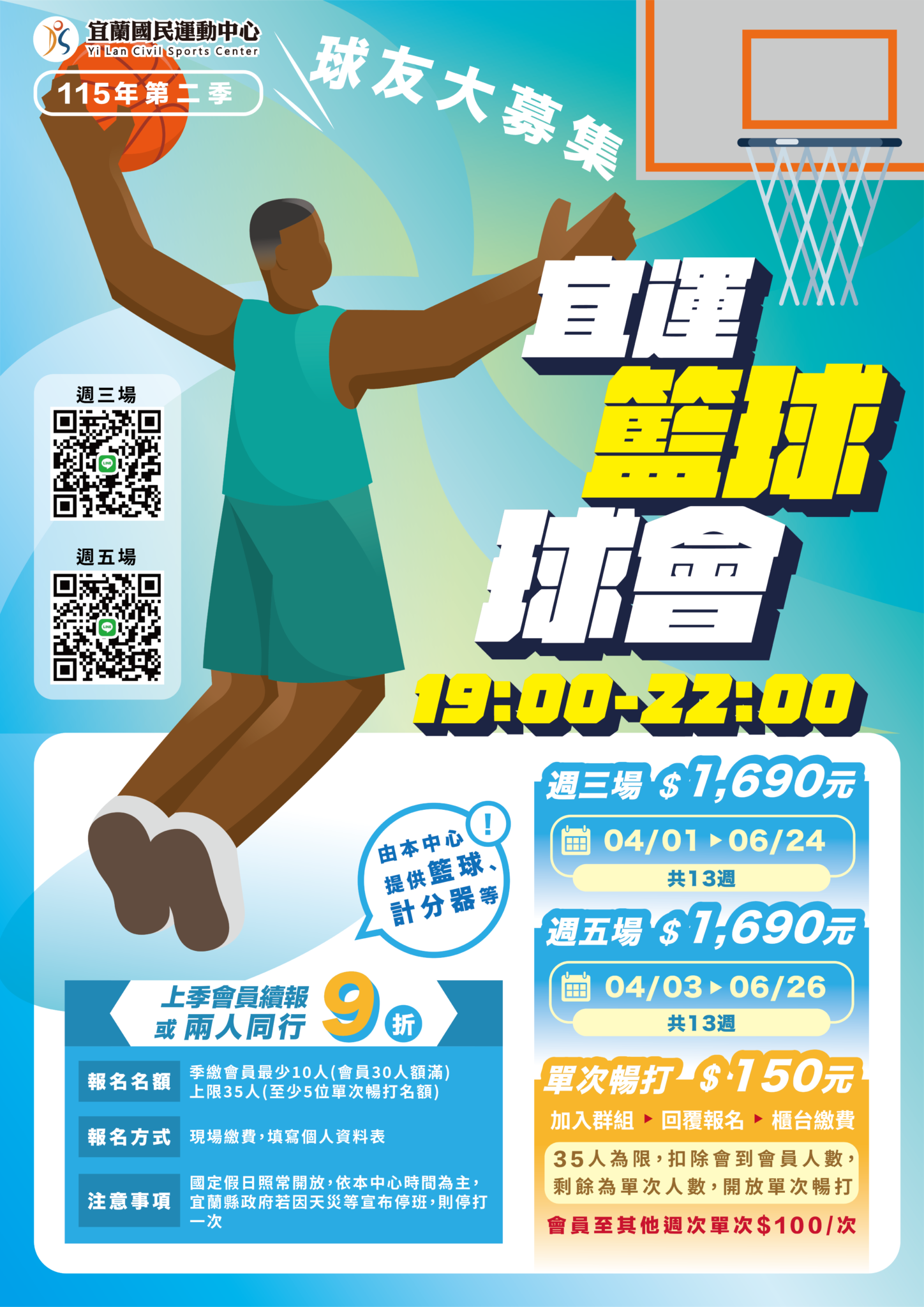 |每週三|4/1-6/24(𝟭𝟵:𝟬𝟬-𝟮𝟮:𝟬𝟬)