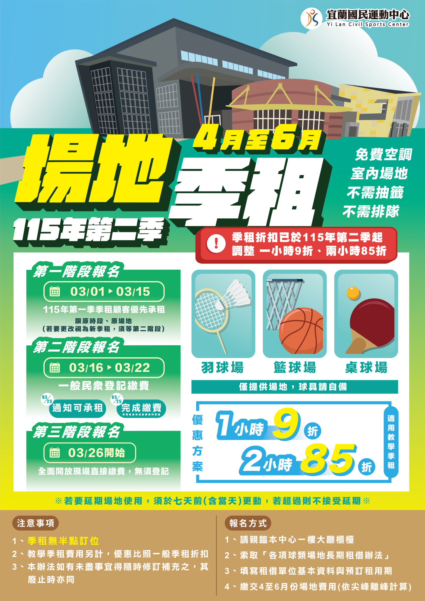 ► 限原時段場地 若更改或新增場地視為第二階段新季租
